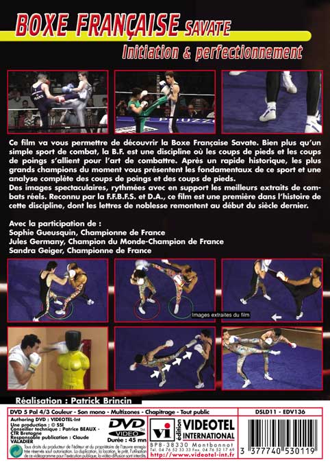 Avec la Fédération, initiez vous à la boxe française : la savate. Les mouvements fondamentaux sont expliqués par de grands champions, qui vous permettront de synchroniser vos pieds et poings avec votre corps pour combattre avec art.