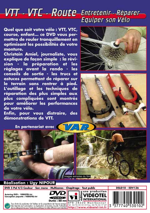 Ce film vous montre l’entretien et la réparation des vélos de A à Z. Le démontage et le remontage de toutes les pièces et accessoires, et enfin les réglages. Un film indispensable pour une pratique sécurisante, en toute liberté et pour