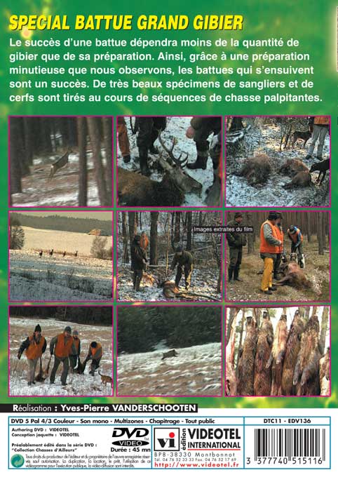Le succès d’une battue dépendra moins de la quantité de gibier que de sa préparation. Ainsi, grâce à une préparation minutieuse que nous observons, les battues qui s’ensuivent sont un succès. De très beaux spécimens de sangliers et de cerfs sont tirés au cours de séquences de chasse palpitantes.