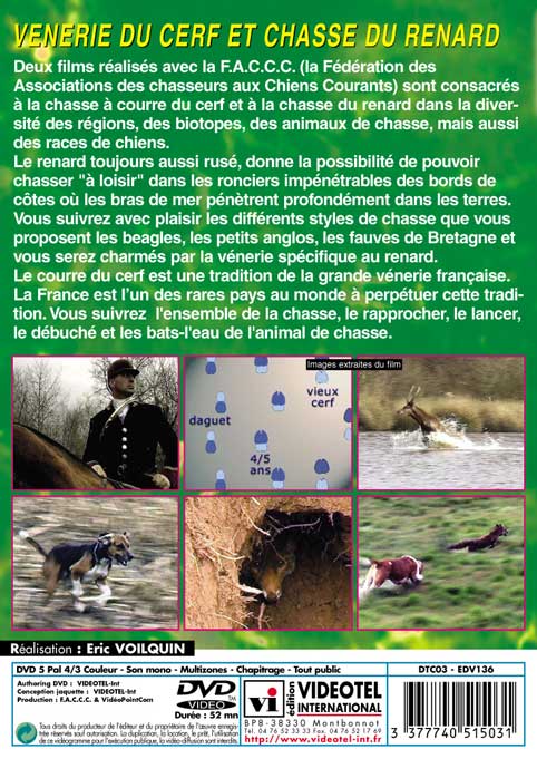 Deux films réalisés avec la F.A.C.C.C. (la Fédération des Associations des chasseurs aux Chiens Courants) sont consacrés à la chasse à courre du cerf et à la chasse du renard dans la diversité des régions, des biotopes, des animaux de chasse, mais aussi des races de chiens.