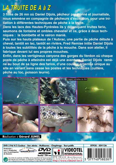 3 films de 26 mn où Daniel Dijols, pêcheur passionné et journaliste, nous emmène en compagnie de pêcheurs d’exception, pour une initiation à différentes techniques de pêche à la truite.