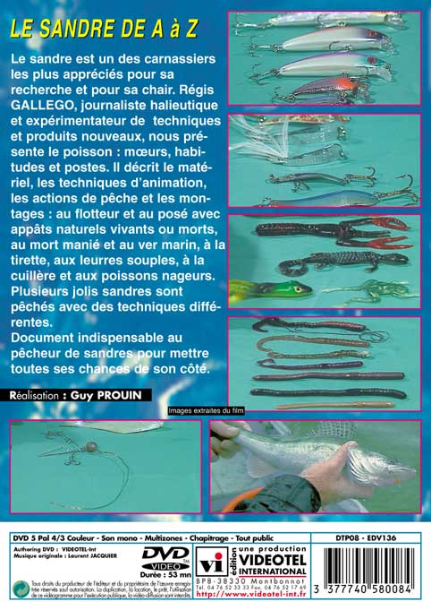 Régis Gallégo présente le poisson : mœurs, habitudes et postes. Il décrit le matériel, les techniques d’animation, les actions de pêche et les montages (au flotteur et au posé avec appâts naturels vivants ou morts, au mort manié et au ver marin, à la tirette, aux leurres...). De jolis sandres.