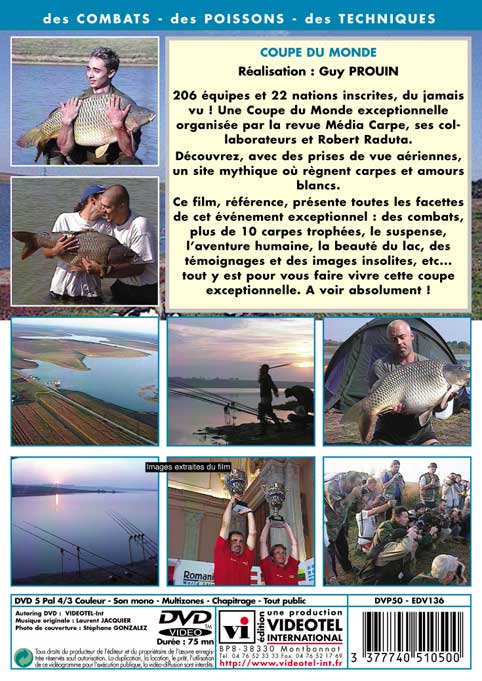 206 équipes, 22 pays, des carpes et des amours blancs. Ce film montre des combats en direct, plus de 10 carpes trophées, le suspense, l’aventure humaine, la beauté du lac avec des prises de vue aériennes, des témoignages, des images insolites, etc... Tout y est pour vous faire vivre cette coupe du monde intemporelle et exceptionnelle.