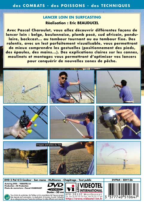 Avec Pascal Charoulet, vous allez découvrir différentes façons de lancer loin : belge, boulon-naise, plomb posé, sud africain, pendu-laire, backcast... au tambour tournant ou au tambour fixe. Des explications claires sur les gestuelles, cannes, moulinets et montages vous permettront d’optimiser vos lancers pour con-quérir de nouvelles zones de pêche.