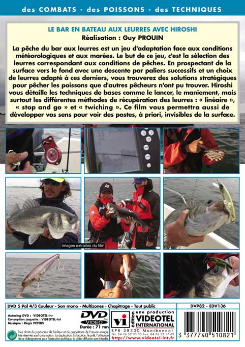 La pêche du bar aux leurres est un jeu d’adaptation face aux conditions météorologiques et aux marées. Le but de ce jeu, c’est la sélection des leurres correspondant aux conditions de pêches. En prospectant de la surface vers le fond avec une descente par paliers successifs et un choix de leurres adapté à ces derniers, vous trouverez des solutions stratégiques pour pêcher les poissons que d’autres pêcheurs n’ont pu trouver. Hiroshi vous détaille les techniques de bases comme le lancer, le maniement, mais surtout les différentes méthodes de récupération des leurres : « linéaire », « stop and go » et « twiching ». Ce film vous permettra aussi de développer vos sens pour voir des postes, à priori, invisibles de la surface.