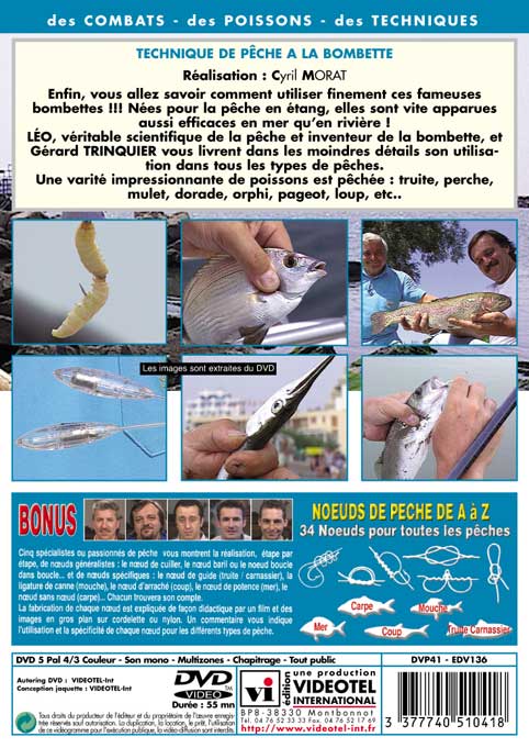 Enfin, vous allez savoir comment utiliser finement ces fameuses bombettes ! Nées pour la pêche en étang, elles sont aussi efficaces en mer qu’en rivière. Léo, inventeur de la bombette et G.Trinquier vous livrent tout sur son utilisation (montage, maniement et fonctionnement) pour pêcher une variété impression-nante de poissons.