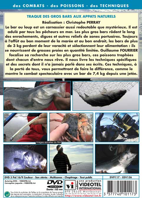 Le bar ou loup est un carnassier aussi redoutable que mystérieux. Il est adulé par tous les pêcheurs en mer. Les plus gros bars rôdent le long des enrochements, digues et autres reliefs de zones portuaires. Toujours à l’affût au bon moment de la marée et au bon endroit, les bars de plus de 3 kg perdent de leur voracité et sélectionnent leur alimentation : ils se nourrissent de grosses proies en quantité limitée. Guillaume FOURRIER focalise sa recherche sur les plus gros bars, ces poissons trophées dont chacun d’entre nous rêve. Il nous livre les techniques spécifiques et des secrets dont il n’a jamais parlé dans ses écrits. Ces techniques, à la porté de tous, vous permettront de faire la différence, comme le montre le combat spectaculaire avec un bar de 7,4 kg depuis une jetée.
