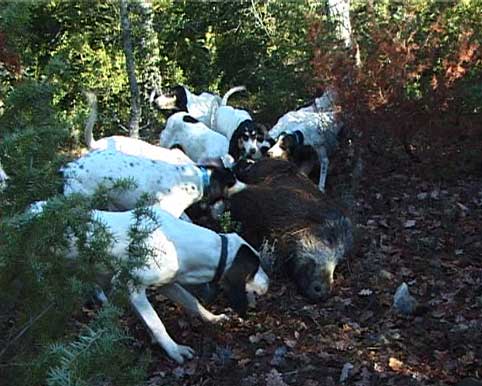 -La chasse au sanglier peut être aussi très physique, c’est un challenge relevé par Jean-Luc Pontet lorsqu’il descend dans les gorges de la Nesque avec sa meute d’ariégeois en compagnie de ses amis traqueurs.