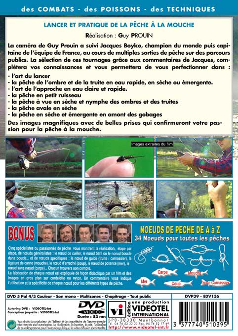 Le champion Jacques Boyko vous montre, lors de multiples sorties de pêche, l’art du lancer, la pêche de l’ombre et de la truite en eaux rapides, en sêche