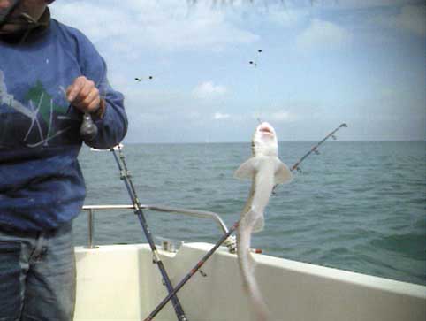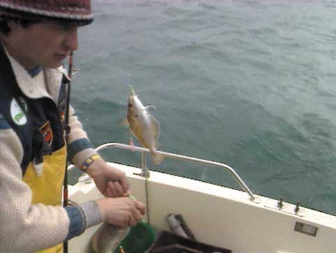 Au port de la Rochelle durant deux jours de pêche à soutenir, les deux champions préparent leurs lignes sous nos yeux. En mer, ils pêchent une raie, une morue, des tacauds, des roussettes et des congres.