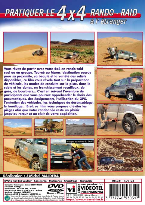 Vous voulez partir en expédition ! Ce film vous donne l’indispensable pour une bonne prépa-ration, une pratique sécurisante sur différents terrains : sable, dunes, rocaille... Mais aussi toutes les astuces pour se sortir des pièges visibles ou cachés. Road-book, pneumatique, GPS, conduite, équipements, santé, bivouac, logisti-que, alimentation... Tout est prêt, Partez ! (Tourné au Maroc).