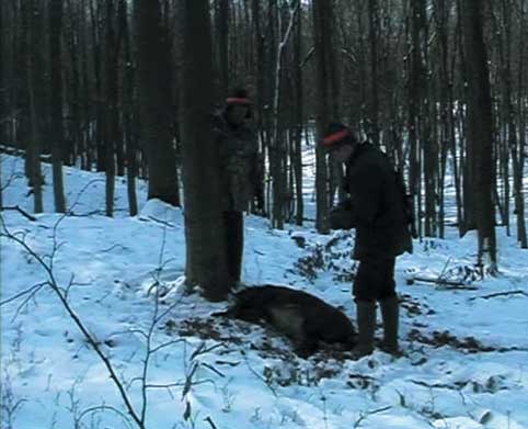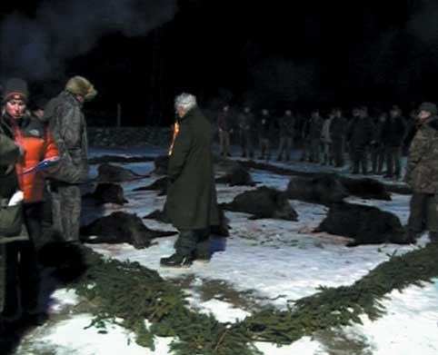 Battues d’hiver en Tchéquie : sangliers noirs sur fond blanc des vallées enneigées dans un pays où la chasse est fortement empreinte de tradition et de cérémonial.